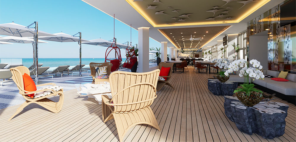 这家屋顶酒吧拥有一个泳池,可欣赏到一望无际的海景,很适合闲暇时来这里享受阳光、海风、小吃和美妙饮品。