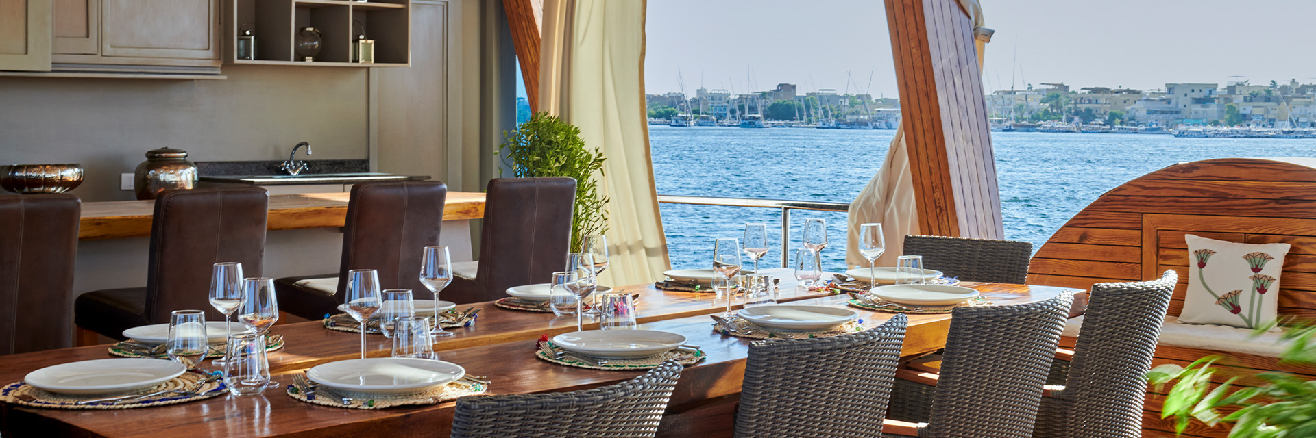 船上餐饮——在欣赏美景的同时,悠闲地乘船游览河流。Mazaj Seba 号游船拥有自己的烹饪团队,为所有宾客精心烹制埃及风味佳肴。这些美食均采用新鲜的当地食材,您可在船上的室内餐厅或楼上的露天用餐区享用。