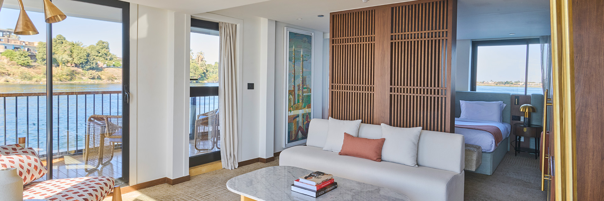 Mazaj Sia 号游船仅有9间客房,确保您在船上的每一刻都尽享私密与舒适。大部分客房为豪华客舱,配备记忆海绵床垫和优质床品,让您一夜酣眠。客舱内装饰奢华,设施齐全,包括精美的独立卫浴、迷你吧以及法式阳台,让您在放松身心的同时,饱览尼罗河的壮丽景色。您还可以选择升级您的旅程,入住单人豪华套房或两间皇家套房之一,所有套房最多可容纳三位宾客。