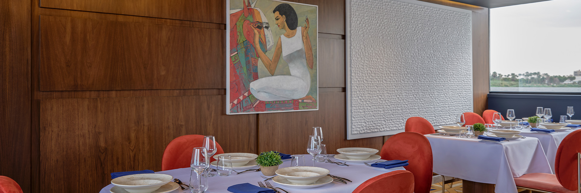 • 船上厨师烹制新鲜埃及美食,并提供室内和室外用餐空间。