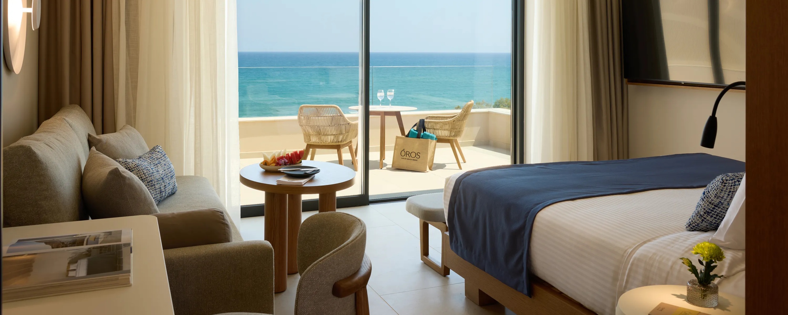 奥罗斯豪华海滩度假村(OROS LUXURY BEACH RESORT)的每间客房都拥有开阔的克里特海美景,并配以时尚简约的家具和充足的自然光线。您可在豪华客房中尽享舒适,或在每间小型套房旁的私人泳池中畅游一番。