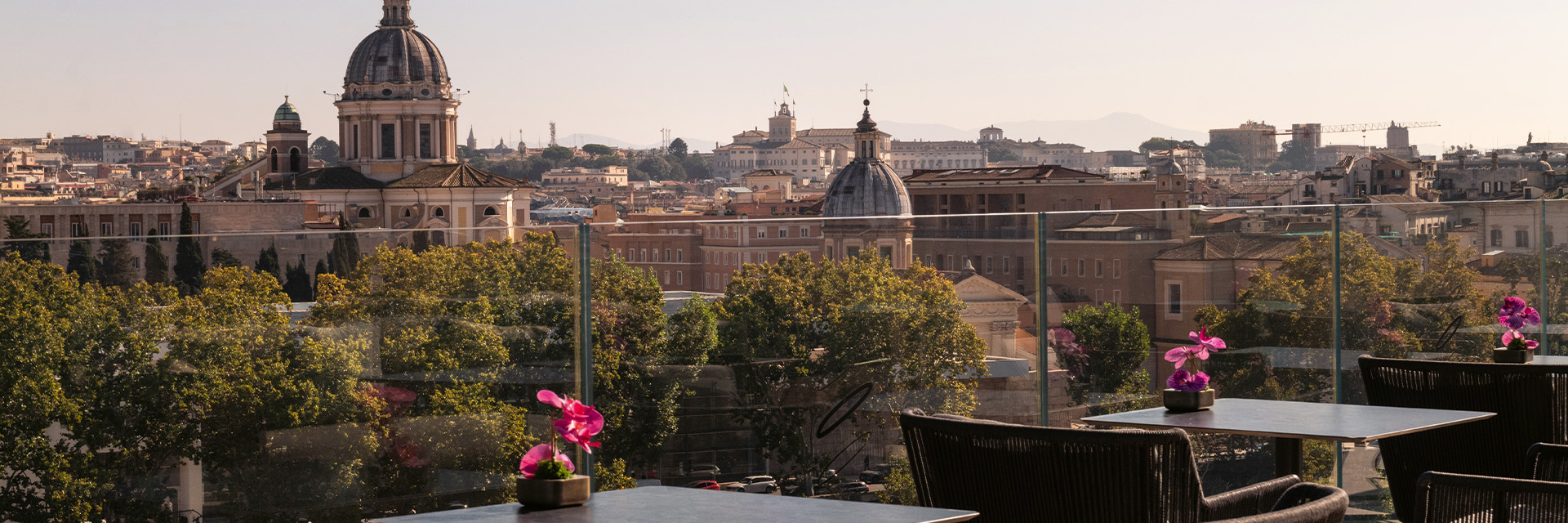 餐饮场所高耸于城市之上,客人可以沉浸在罗马的美景中,同时享用豪华的海鲜和招牌饮品。