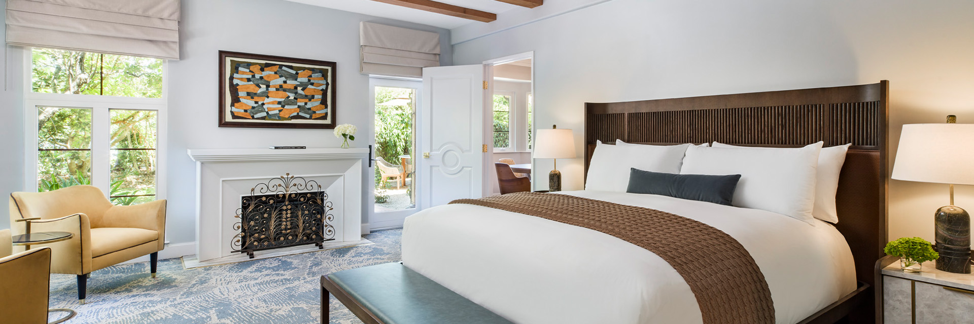 结伴出行的团体或家庭会喜欢配备沙发床的丰塔纳双皇后房或索诺玛高级特大床房。索诺玛特大床房、丰塔纳特大床房和紫藤特大床房都是与挚爱之人共度浪漫假期的理想之选。宽敞的单卧室维纳罗萨套房设有独立起居区、浴缸和双洗漱台,空间更为宽敞;而开放式布局的薰衣草套房则拥有半私密的起居区,位于隔墙的另一侧。酿酒师套房可与其他套房连通,形成双卧室套房,适合人数较多的团体入住;丰塔纳工作室套房则配备沙发床,可接待儿童入住。